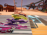 This could not be done before the environment team did their work because if the player was going too fast the visuals could block the track ahead and the player would have trouble maintaining a mental map